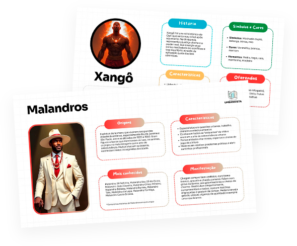 Conheça quem foram as entidades na vida terrena antes de se tornarem espíritos de luz. Descubra biografias de Caboclos, Pretos-Velhos, Exús, Pombogiras, Malandros, Erês, Boiadeiros, Ciganos, Baianos e Marinheiros. Aprenda como suas experiências humanas moldaram seu trabalho espiritual na Umbanda.